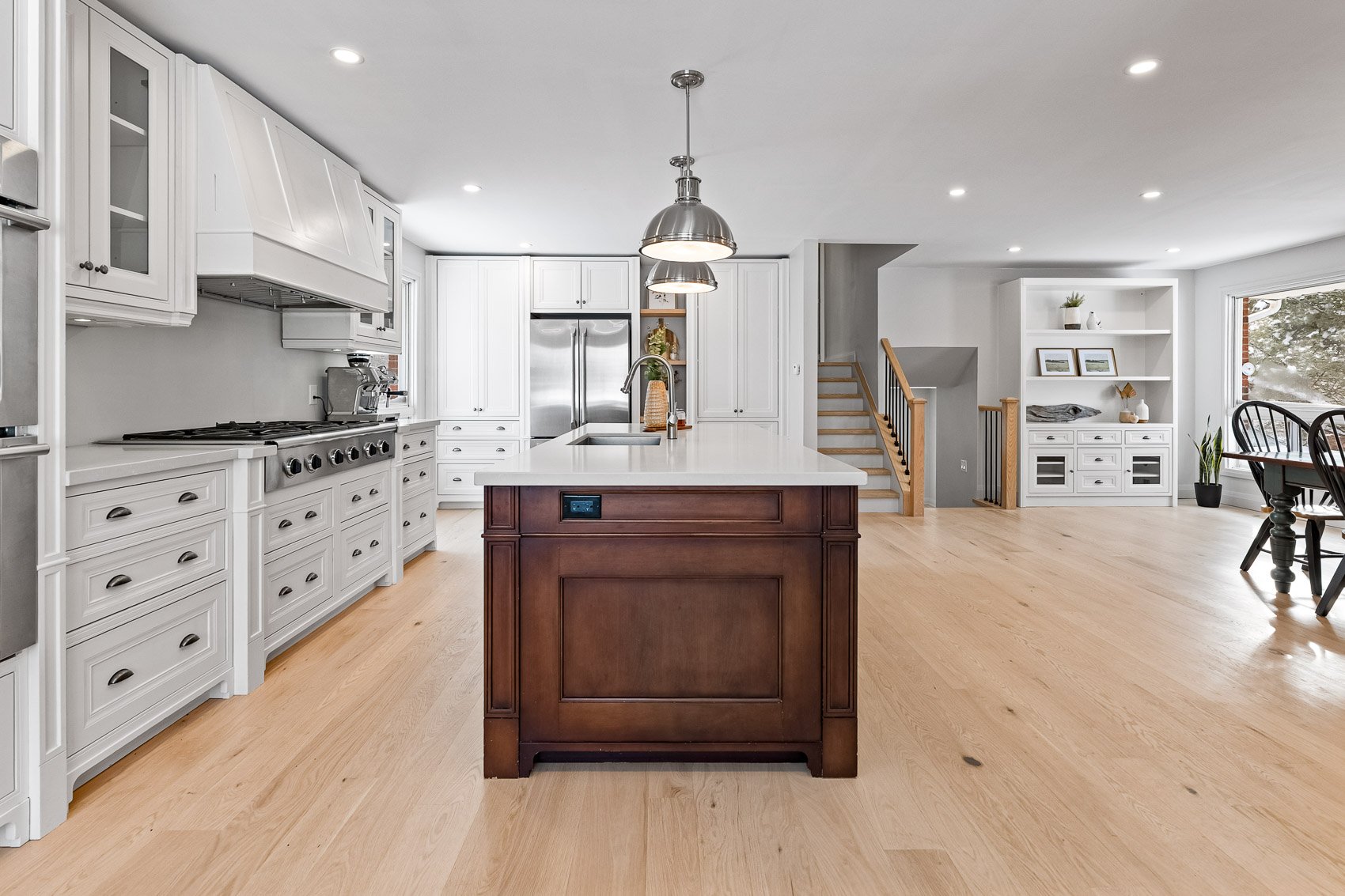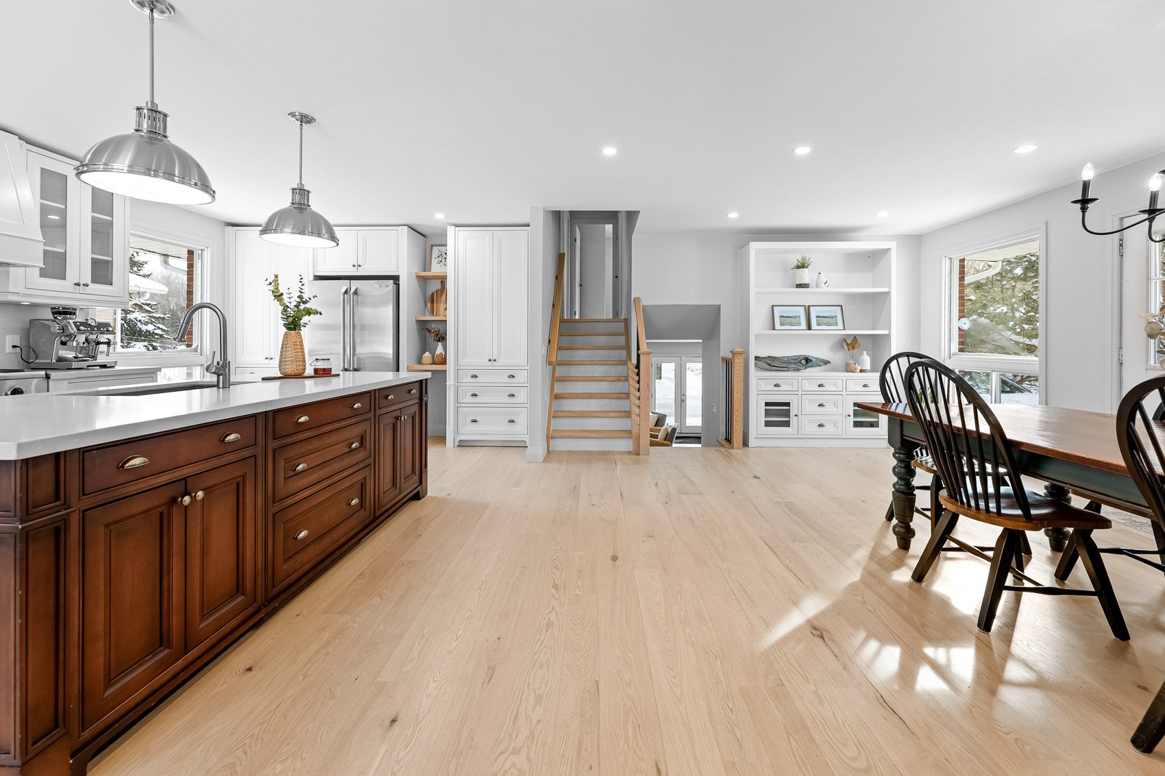 This stunning, fully renovated, 3 bedroom, 4 level back split, backing onto the Grand River is a must see! Step inside and be greeted with white washed oak hardwood floors, throughout a stunning open concept main level. Featuring a large gourmet kitchen with centre island, complete with storage on both sides. Pantries with tons of cupboard space, Dacor 48″ gas 6 burner cooktop, Electrolux double wall oven, all overlooking the spacious dining room. Truly a space meant for entertaining and family gatherings! Upstairs, you will find 3 great sized bedrooms. The Primary with his and her closets and 4 piece semi ensuite. The lower level Family Room is the perfect place to get cozy with a beautiful stone gas fireplace and walk out to your stunning professionally landscaped yard. The basement is bright and partially finished with a rec room with pot lights, windows, and barn doors, leading to the laundry room. Outside, it truly feels like country living-in town! The professionally landscaped yard boasts spectacular continuous blooming plants and includes sugar maple trees, apple trees, a plum tree, a flowering crabapple tree, birch and oak trees. Enjoy watching the birds with your morning coffee by the river, or the sunsets from the front porch and beautiful starry skies the Valley has to offer. The backyard also features a 31′ x 21′ barn/workshop, complete with an upper loft area of the same size. Perfect for your workshop or extra storage. All of this within walking distance to Main Street, of the quaint town of Grand Valley. Offering all of the essentials of daily life, including restaurants, shopping, recreation center, library and public school. Just a short 15 minute drive to Orangeville and 60 minutes to Pearson International Airport. Please see the attached feature sheet for a detailed list of all upgrades and please watch the video tour for all this stunning property has to offer.